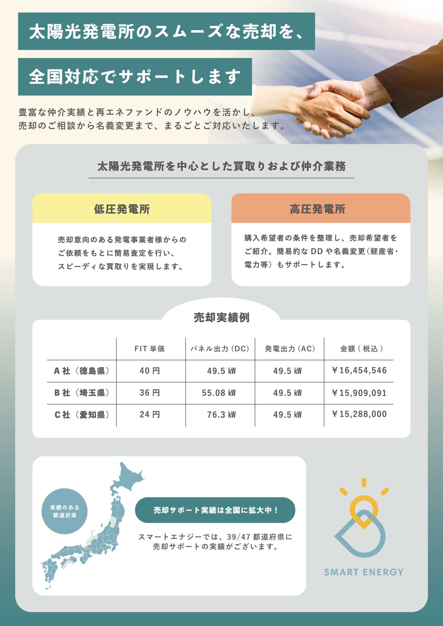 「太陽光発電所を早く売却したい」「太陽光発電所を少しでも安く購入したい」発電所の売買なら、スマートエナジーにお任せください。 ※無料査定実施中。詳細は、本ページ下部をご覧ください