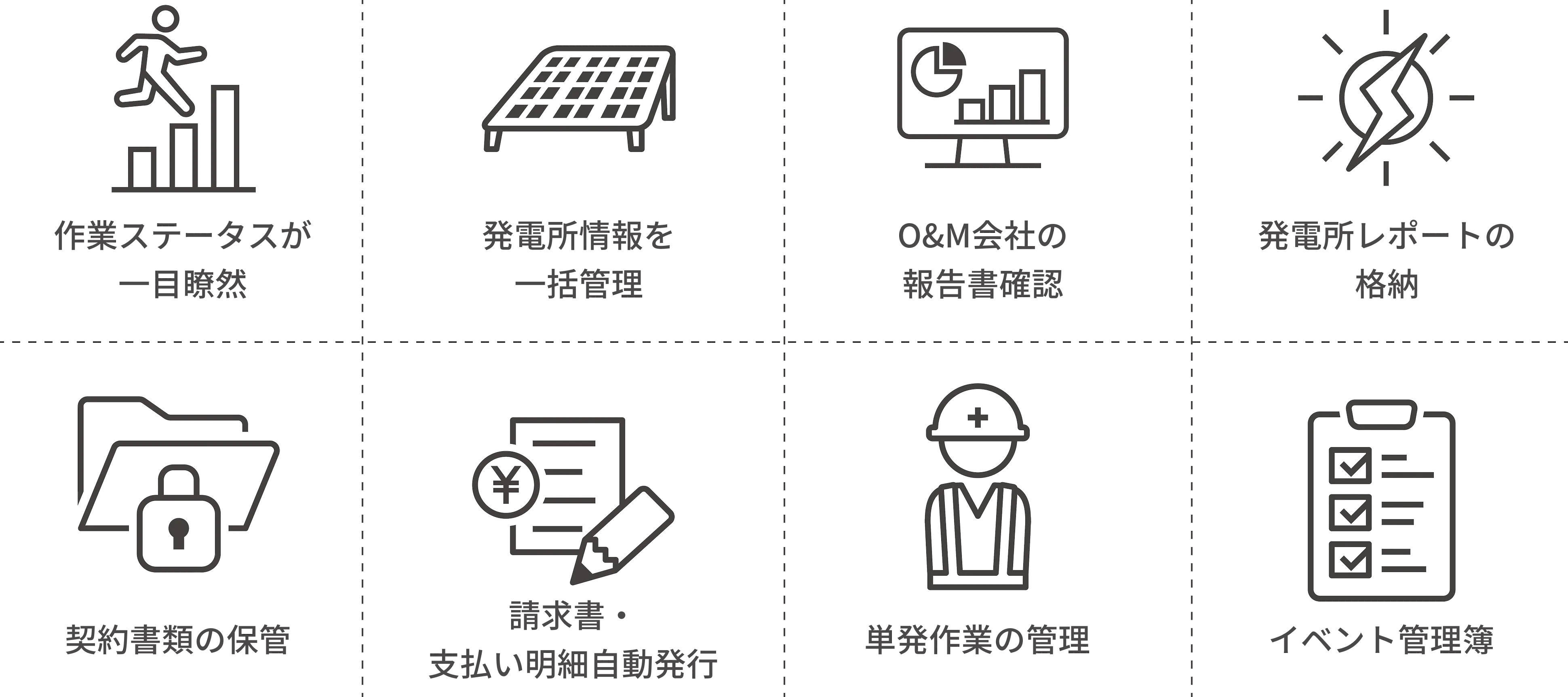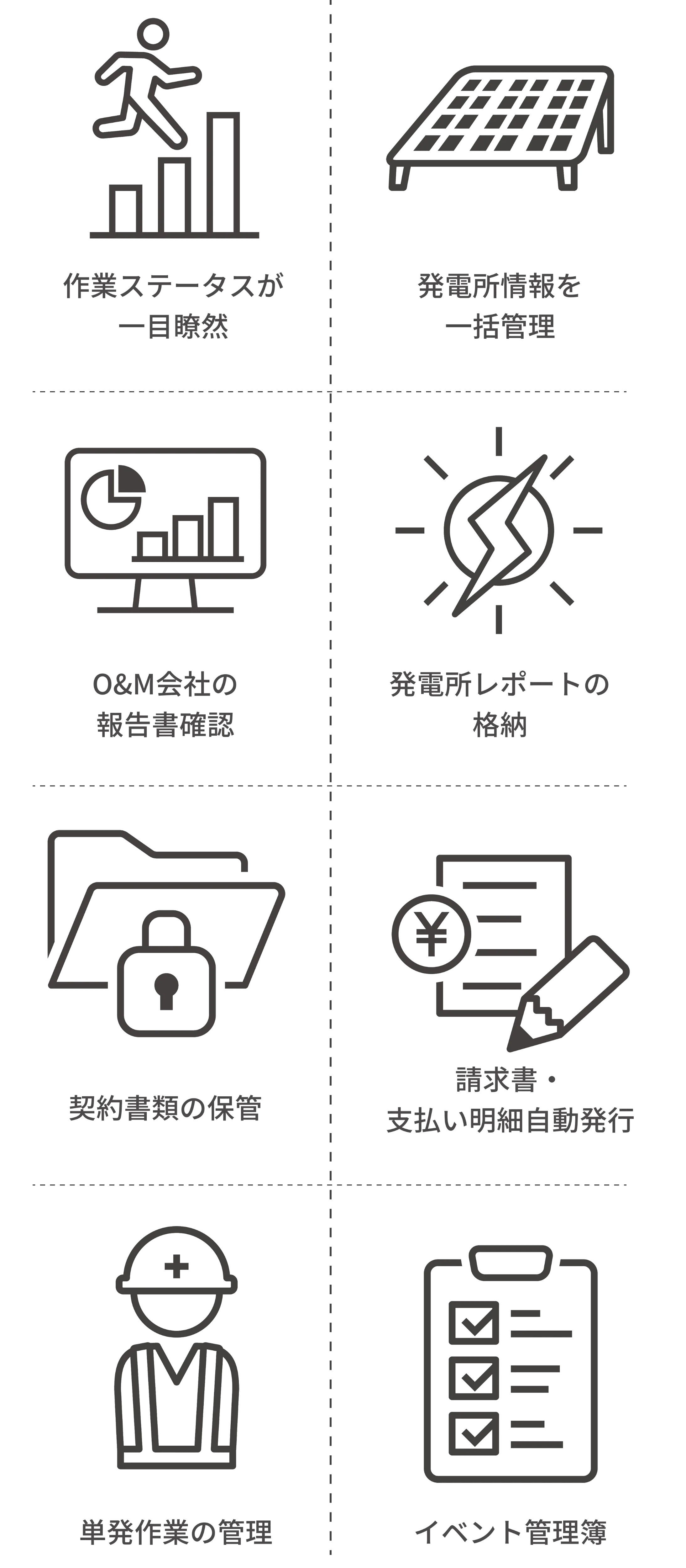 各発電所のスケジュールをMISORA上で管理し、作業進捗を分かりやすく可視化することで、関係者への確実かつ手軽な情報共有が可能です。